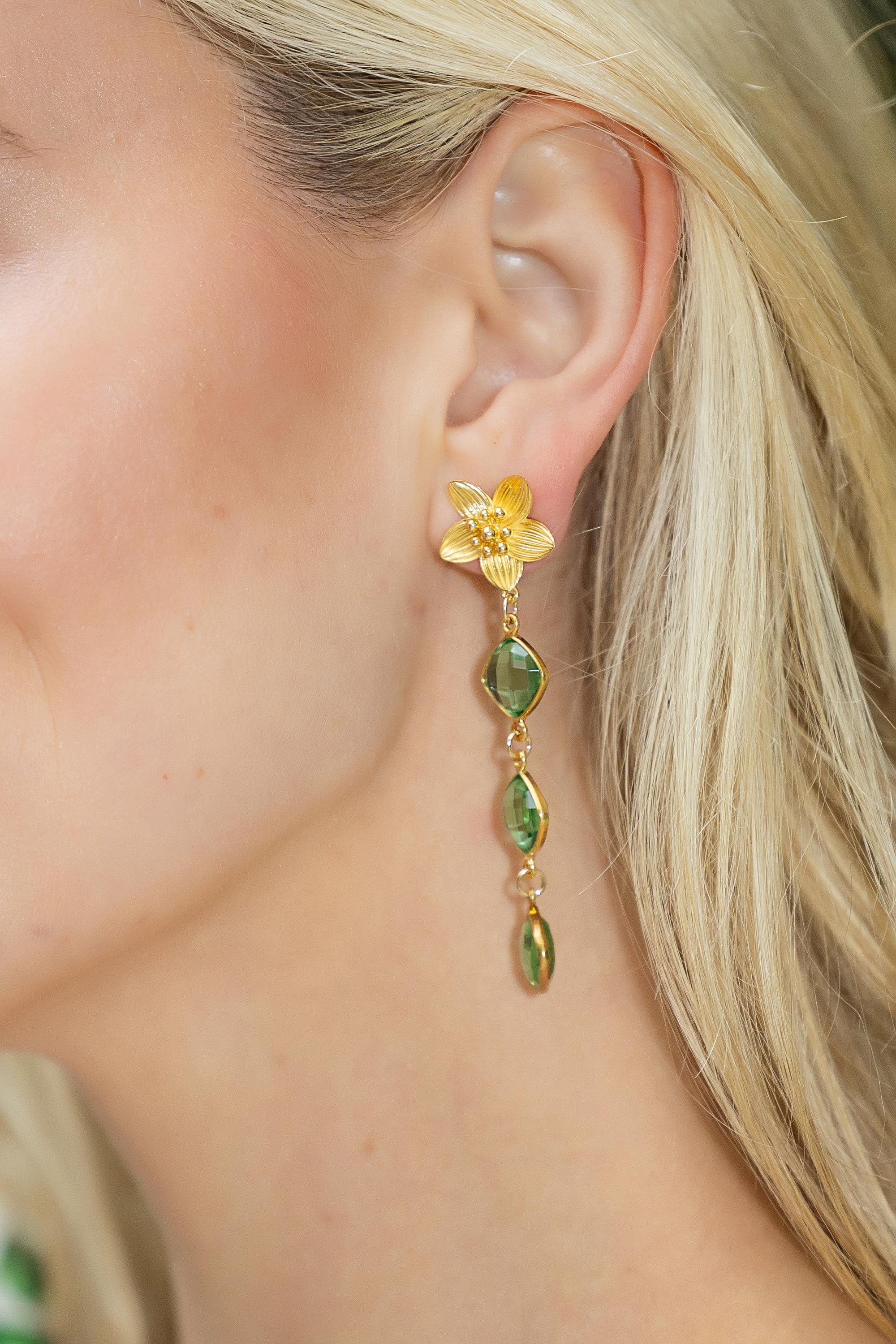 Cecile Triple Green Quartz Earrings