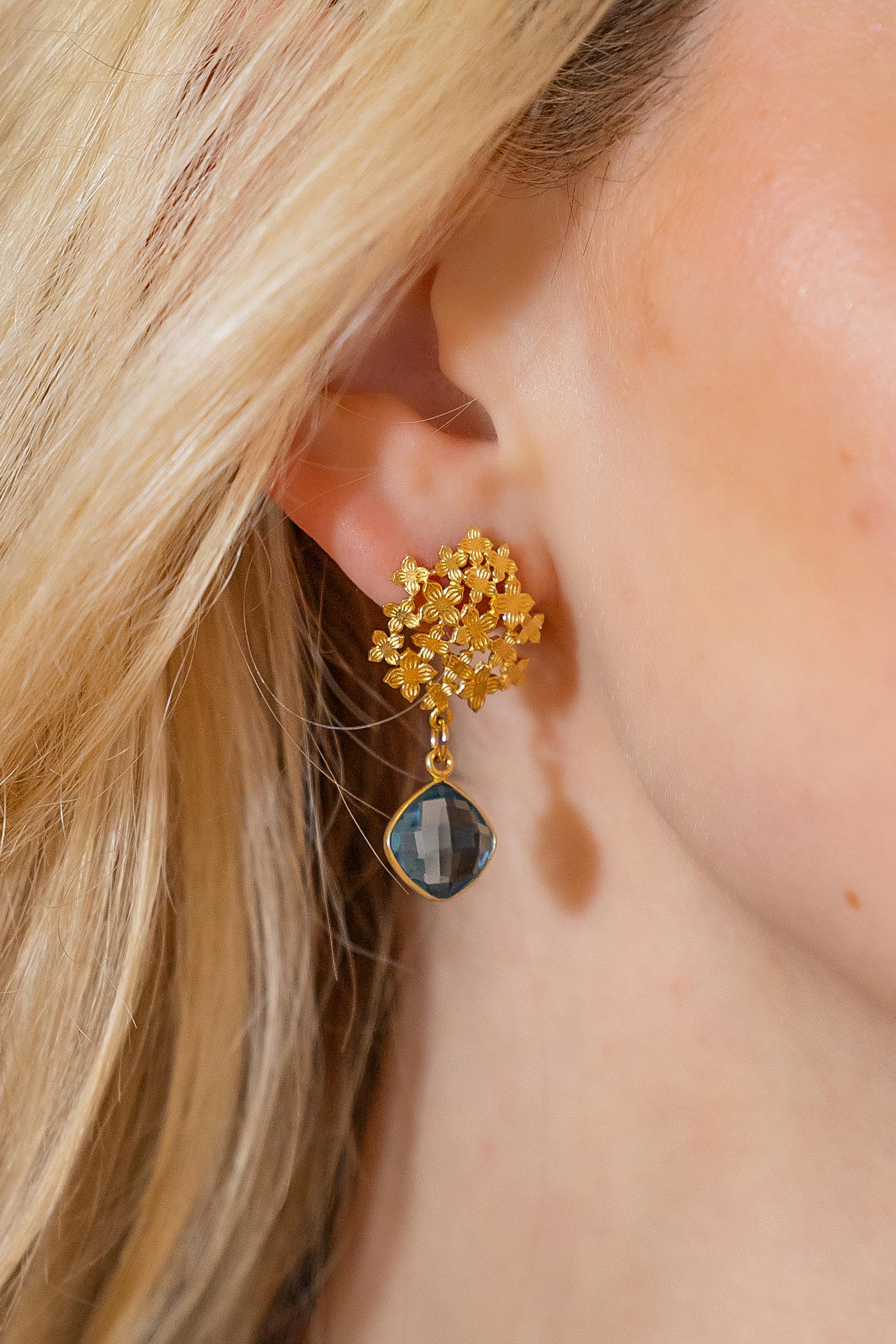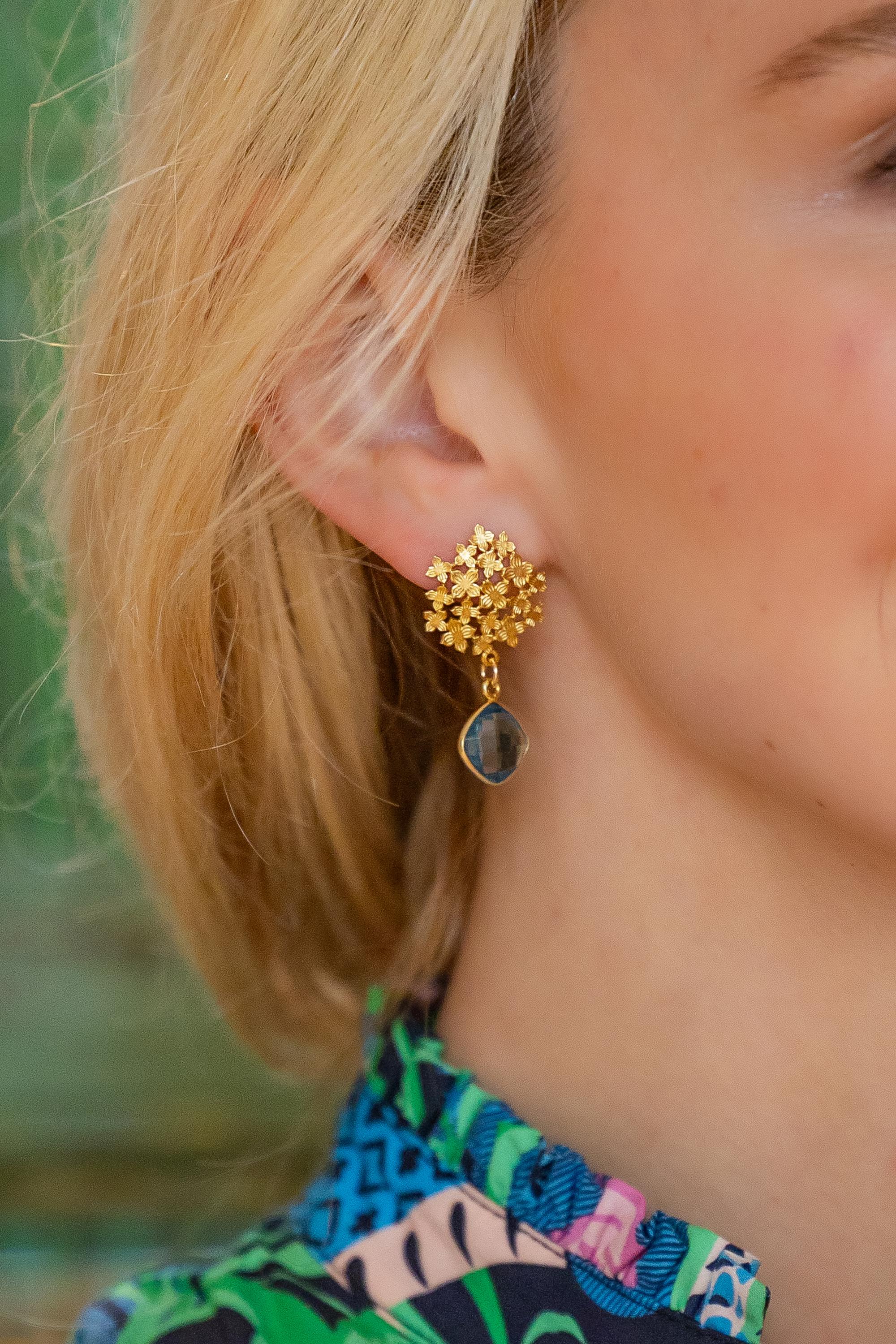Jardin Hydrangea Gold Blue Quartz Earrings