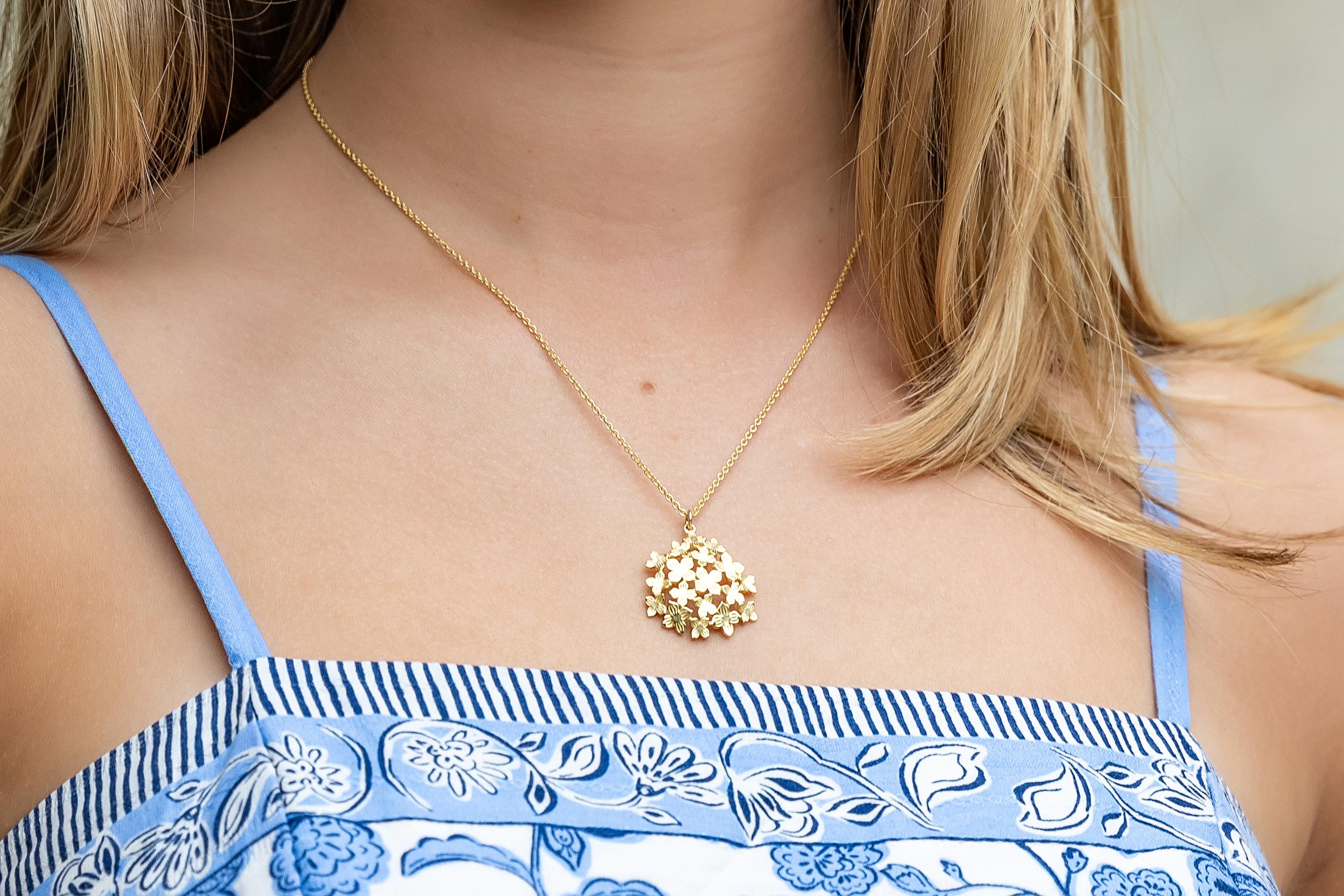 Jardin Hydrangea Gold Pendant Necklace