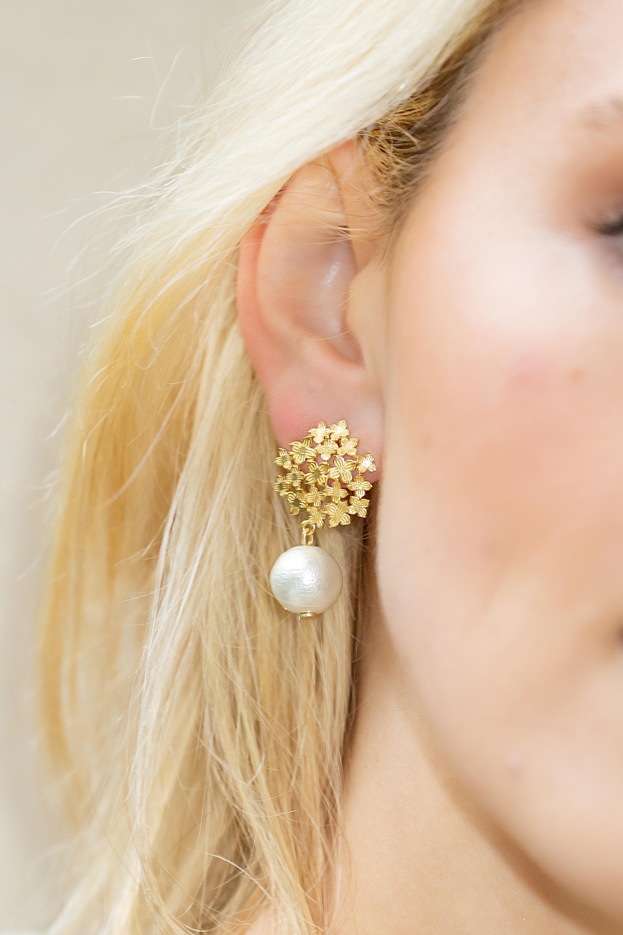 Jardin Hydrangea Gold Single Cotton Pearl Earrings