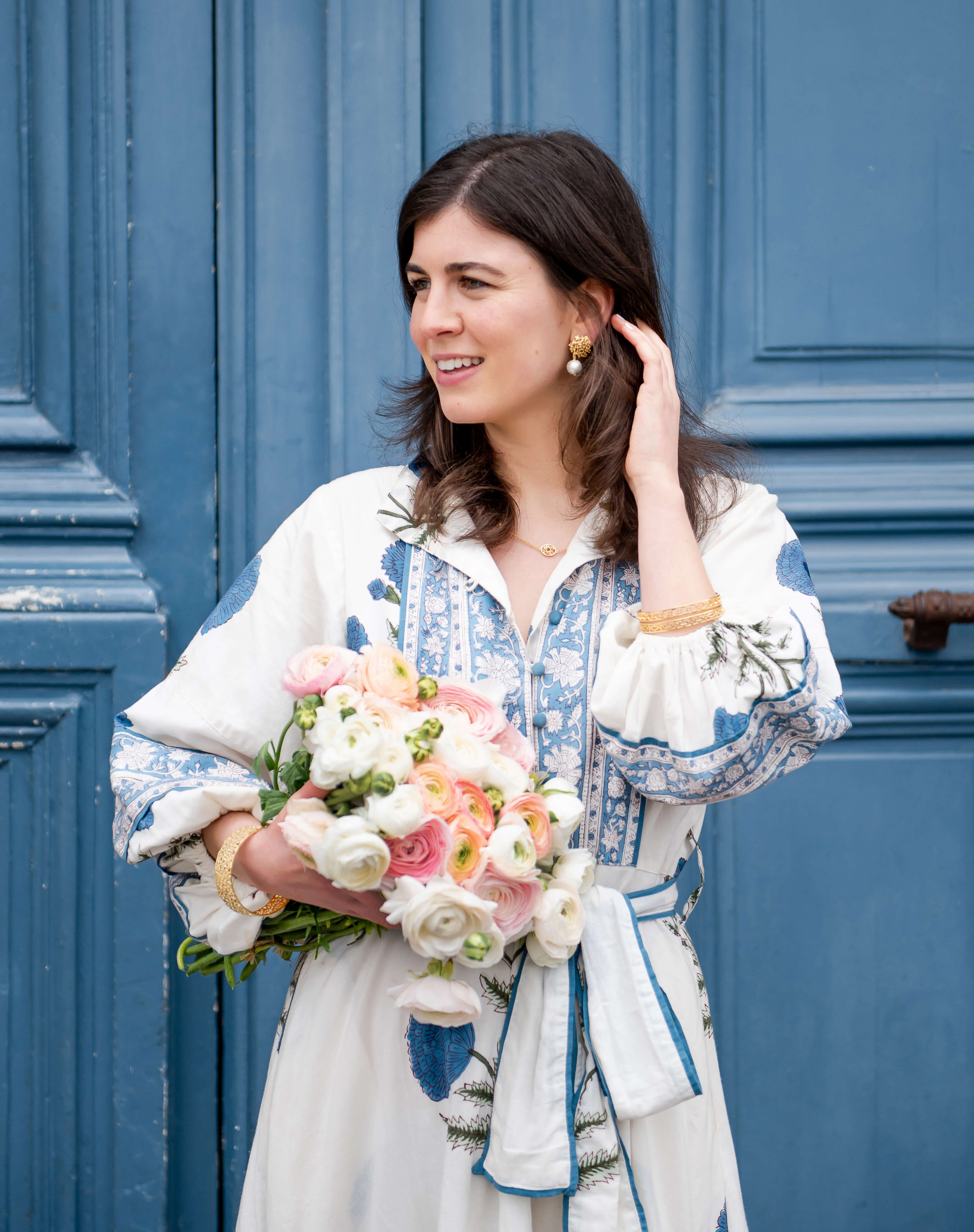 Jardin Hydrangea Gold Hook Earrings