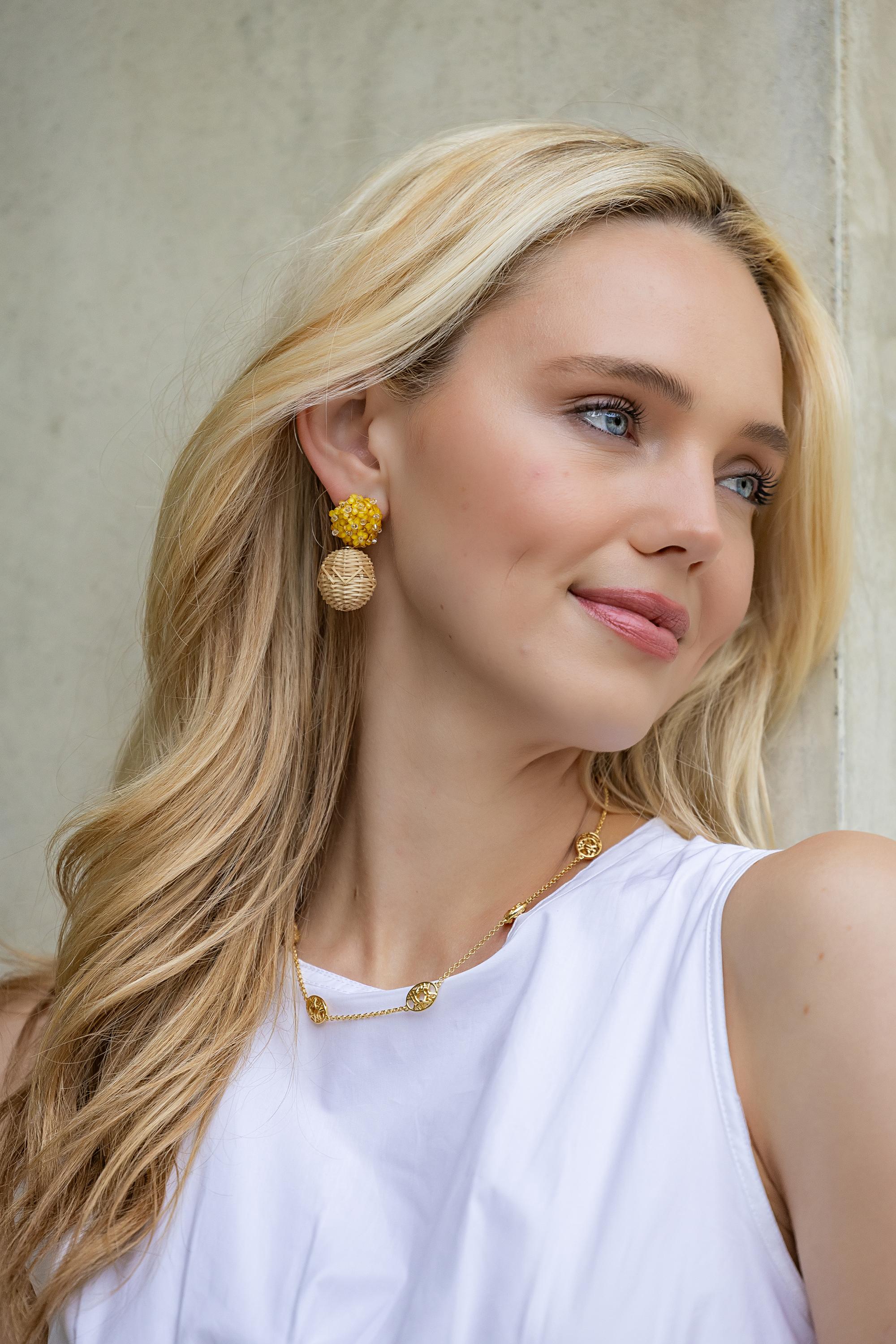 Jardin Hydrangea Gold Sky Blue Quartz Earrings