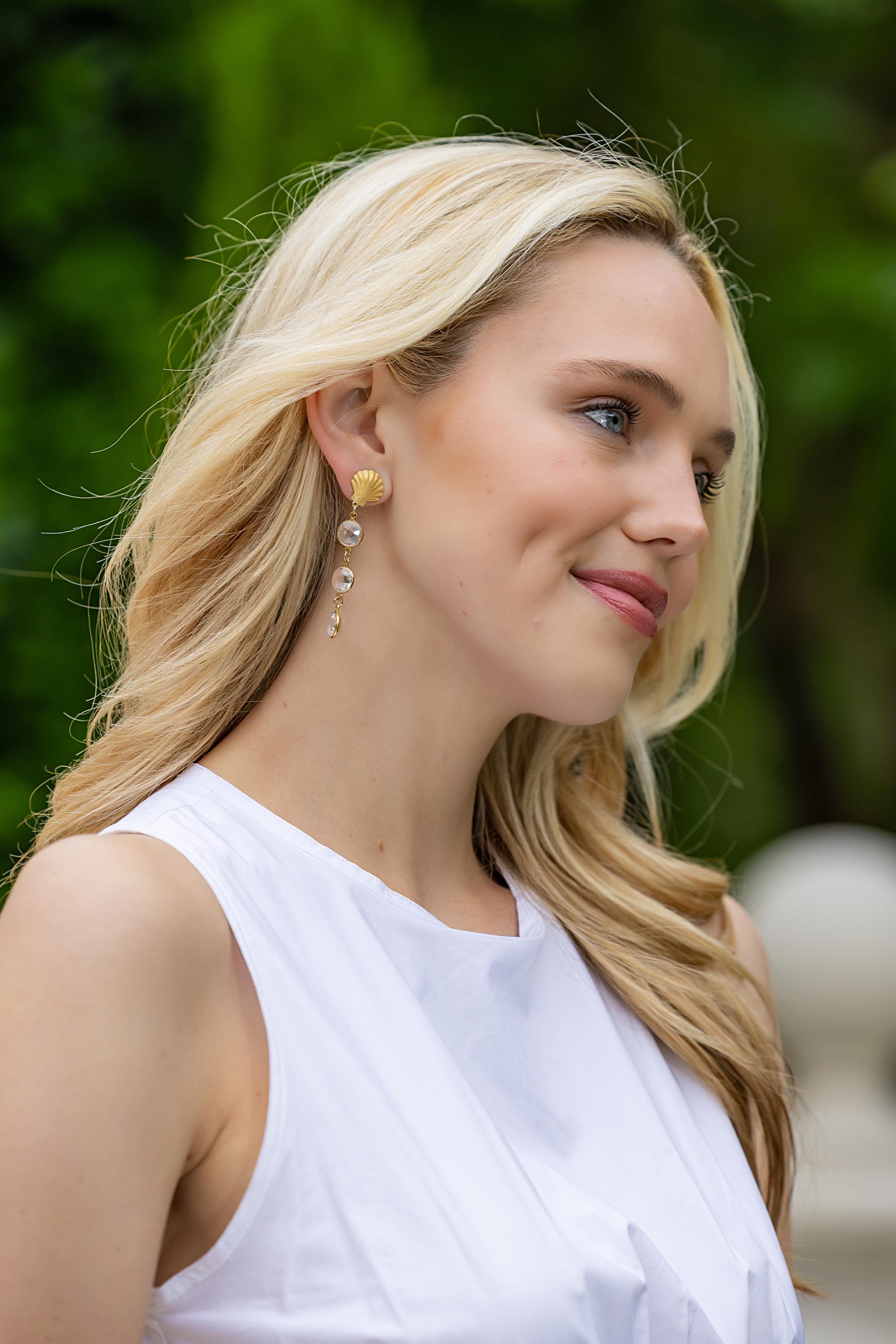 Ocean Shell Clear Crystal Quartz Drop Earring